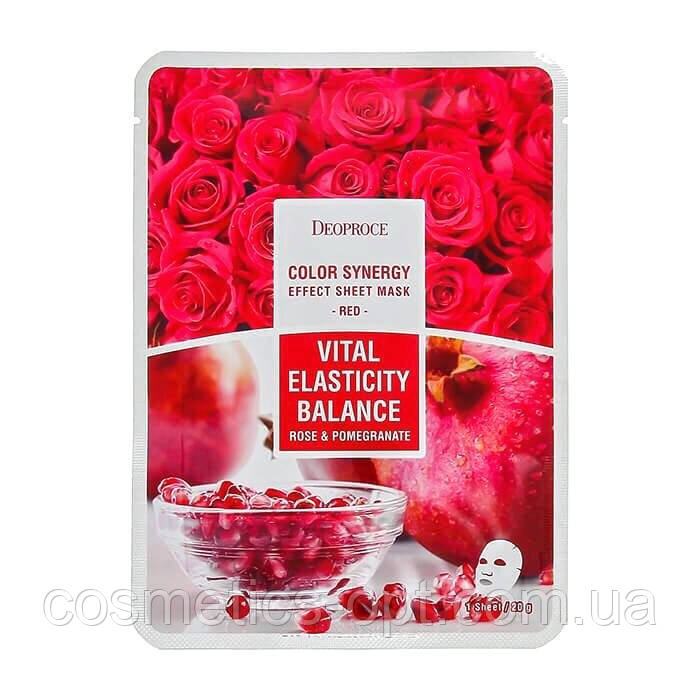 Маска для глибокого зволоження шкіри з пелюстками троянд і гранатом Deoproce Color Synergy Effect Mask Pack Red