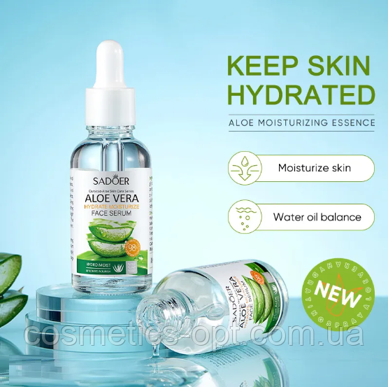 Сироватка для зволоження та оздоровлення шкіри із соком алоє SADOER Aloe Vera Face Serum, 30 ml