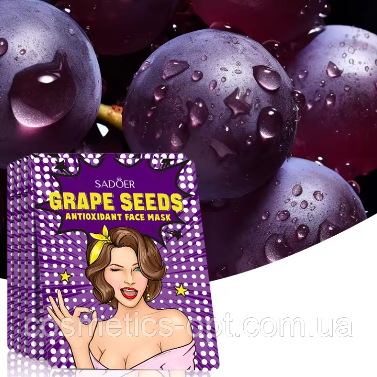 Антиоксидантна тканинна маска для обличчя з олією виноградних кісточок SADOER Mask, 25 g