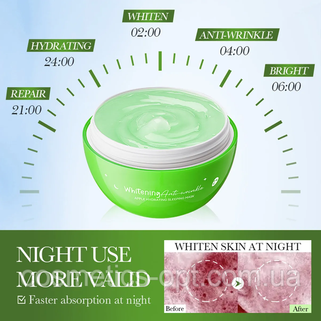 Зволожуюча, освітлююча, підтягуюча нічна маска для обличчя SADOER Whitening APPLE, 120 g