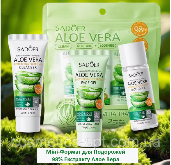 Дорожній набір для догляду за обличчям Sadoer Aloe Vera Moisture Soothing Set (пінка для вмивання, тонік, гель алое)
