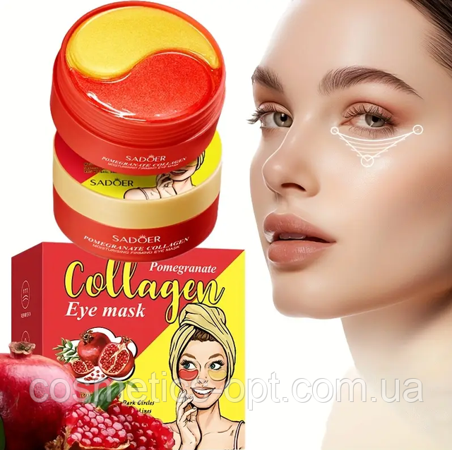 Освіжаючі патчі від зморшок та темних кіл з колагеном та гранатом Sadoer Collagen Pomegranate, 60 шт